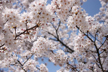 夏のような暖かい陽気、桜が満開です