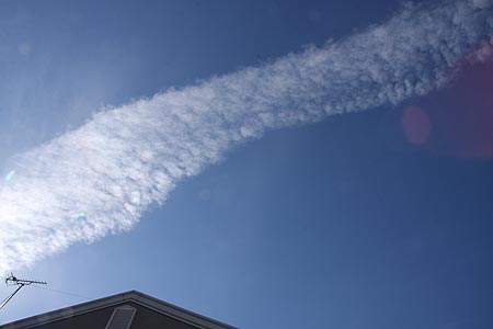 飛行機雲ではないようです。