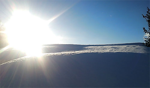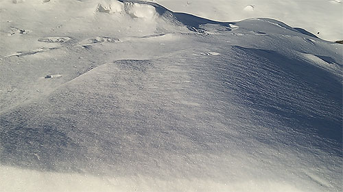 すっきり青空。道端や畑に積もった雪面を角度を変えて撮影してみました。すると。。