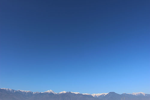 そして今日も連続、日本晴れ。右に三協精密(株)の本社と左に見えるのが常念岳です。