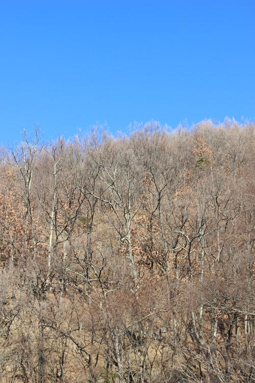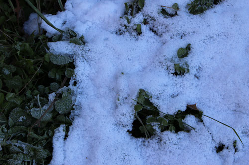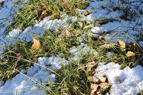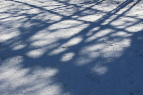 今年最初のスカッと晴れた青空が広がっています。木陰には先日の雪が少し残っています。