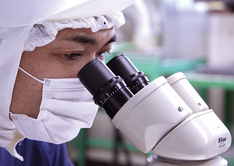 お客様のご要望を忠実にカタチにするためには高精度な金型が要求されます。CAEなどによるトライ&エラーで蓄積したノウハウを活かし、金型設計部門と成形部門の綿密なるコミュニケーションを交わしながらスピーディーに高精度な金型を実現しています。情報機器分野、光学機器分野、ウォッチ分野、自動車分野などの超精密パーツは、三協精密が自負する難度の高い加工、多数個取りテクニック、短納期など、私たちの多彩なチャレンジの結晶。金型設計部門と成形部門の有機的な連携、そして精度と品質への格別なこだわりは、三協精密のプロフェッショナル精神の証になっています。